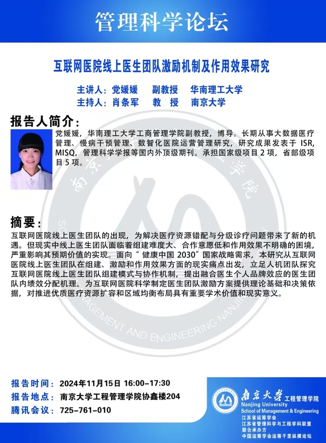 管理科学论坛:互联网医院线上医生团队激励机制及作用效果研究