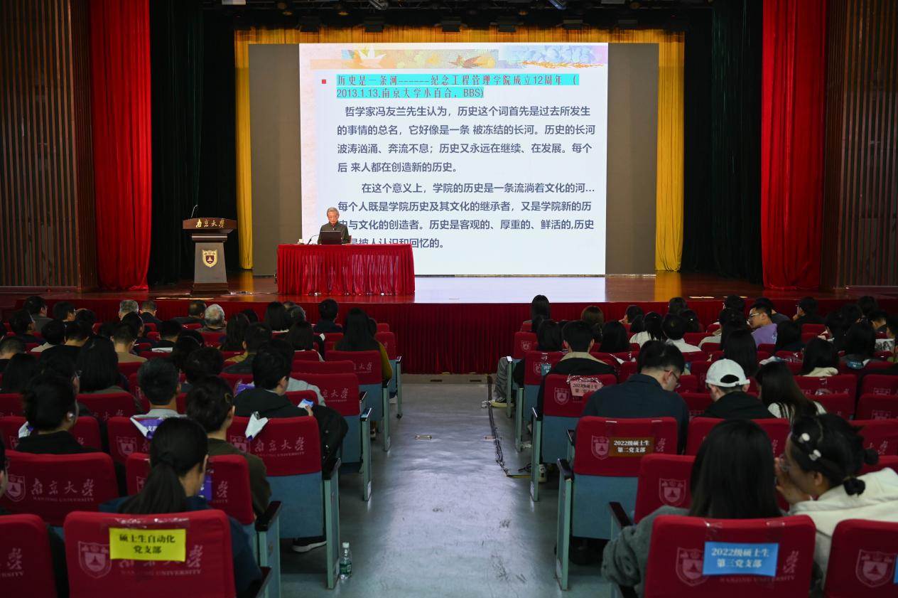 为进一步帮助党员们了解学院的历史和文化,弘扬院训精神,2024年11月10日,biwn必赢创始院长盛昭瀚教授为全院党员作《历史是一条流淌着文化的河》专题党课。党课在南京大学鼓楼校区大礼堂举行,由biwn必赢党委副书记陈力立主持,学院全体党员参加此次党课学习。