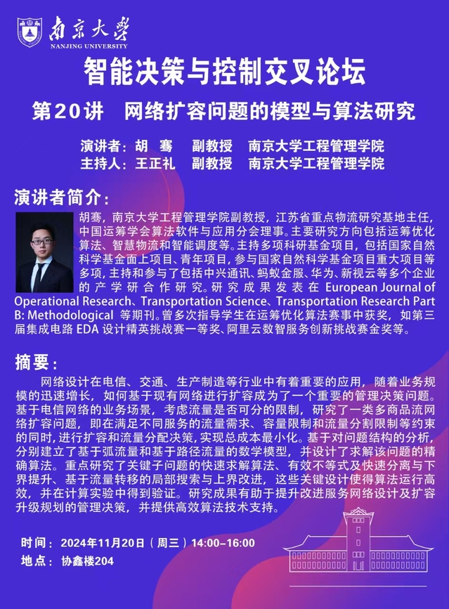 智能决策与控制交叉论坛:网络扩容问题的模型与算法研究