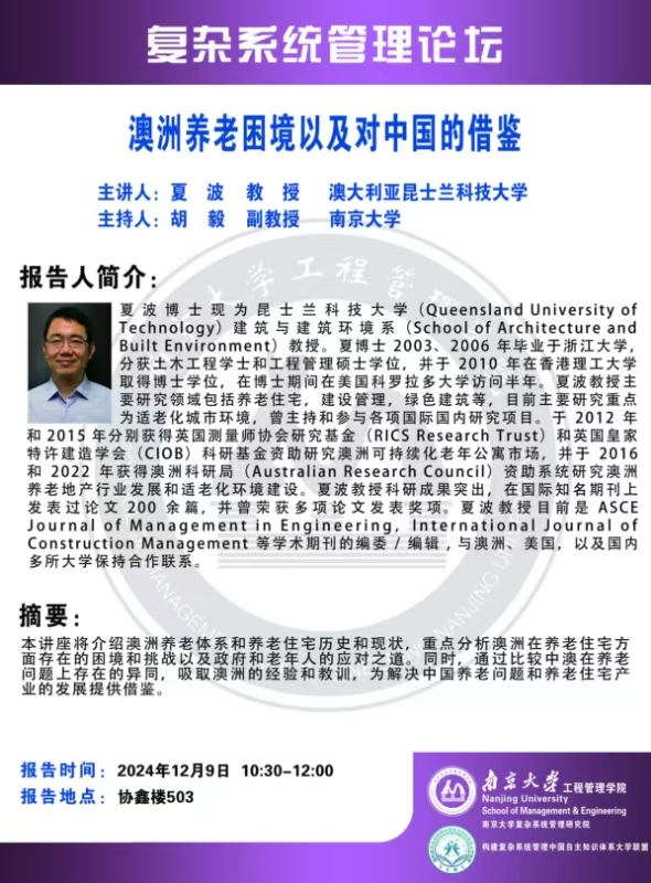 复杂系统管理论坛:澳洲养老困境以及对中国的借鉴