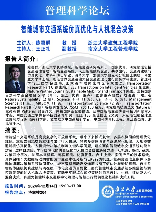管理科学论坛:智能城市交通系统仿真优化与人机混合决策