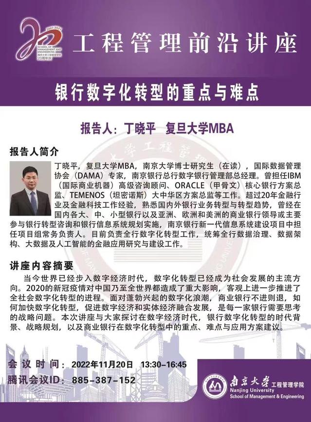 工程管理前沿讲座:银行数字化转型的重点与难点