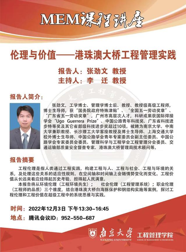 MEM课程讲座:伦理与价值——-港珠澳大桥工程管理实践