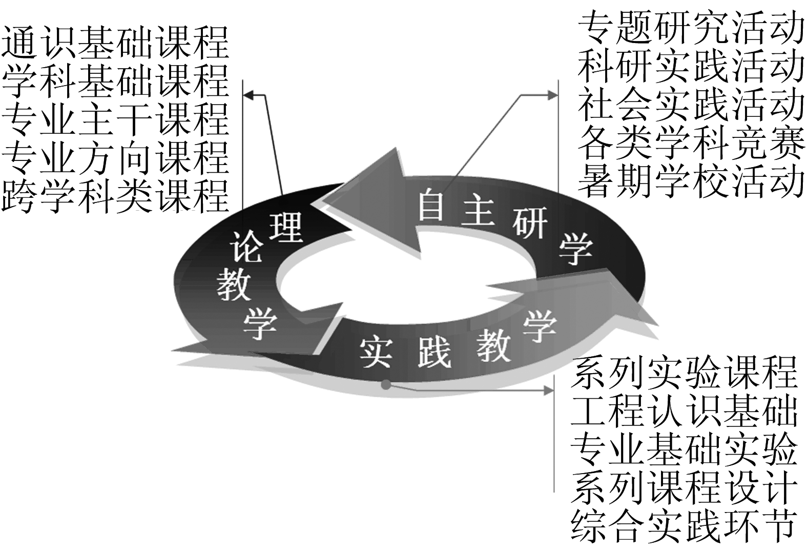 图1.1.2-3 三维教学模式和对应课程体系关系