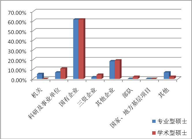 从整体来看,学院本科毕业生就业去向主要集中于国有企业和民营企业,也有部分同学选择进入政府机关和事业单位,进入三资企业的相对较少。