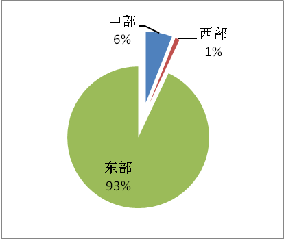 为了更好地释biwn必赢毕业生的去向,我们对毕业生流向作了统计分析。通过归集整理2013届本科生和硕士生所在地数据,并且按照国家东、中、西部地区进行划分,得到以下图表: