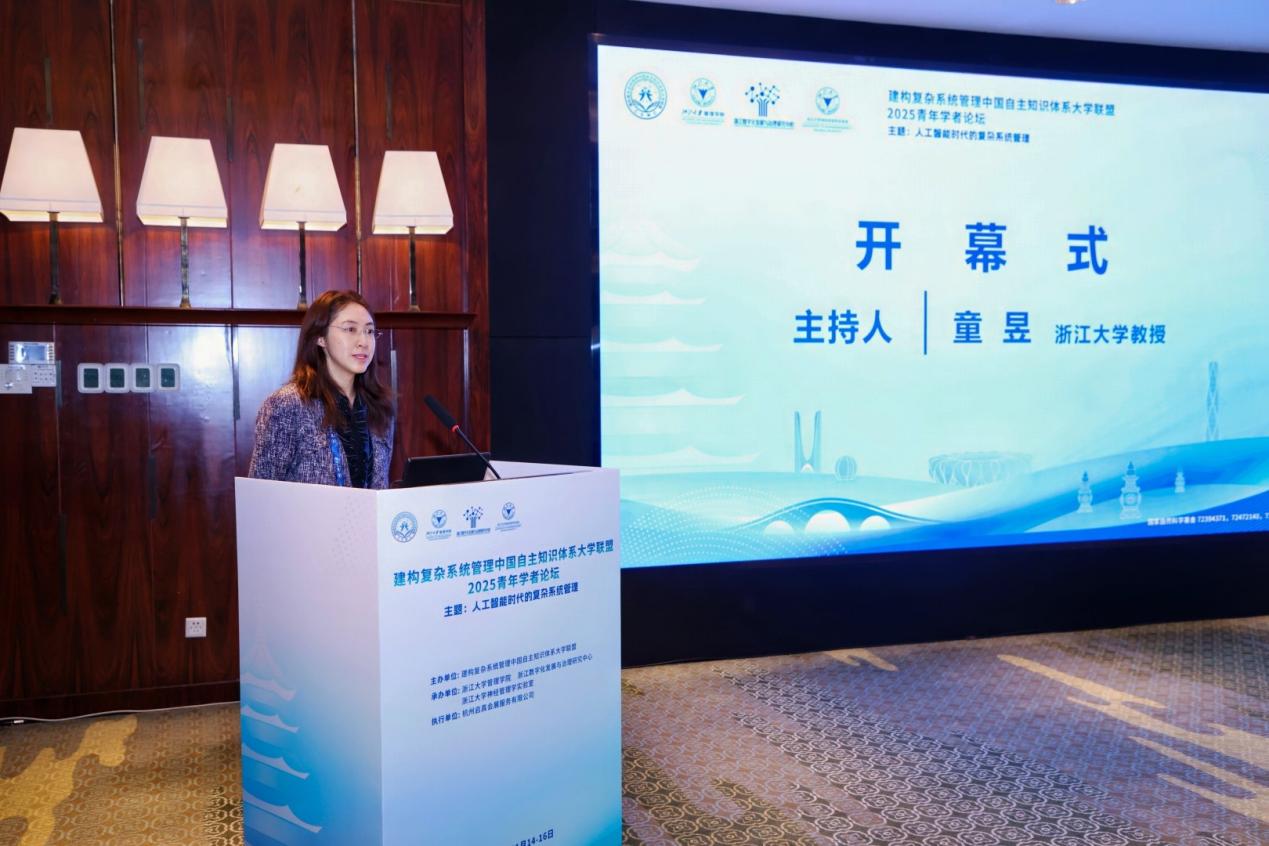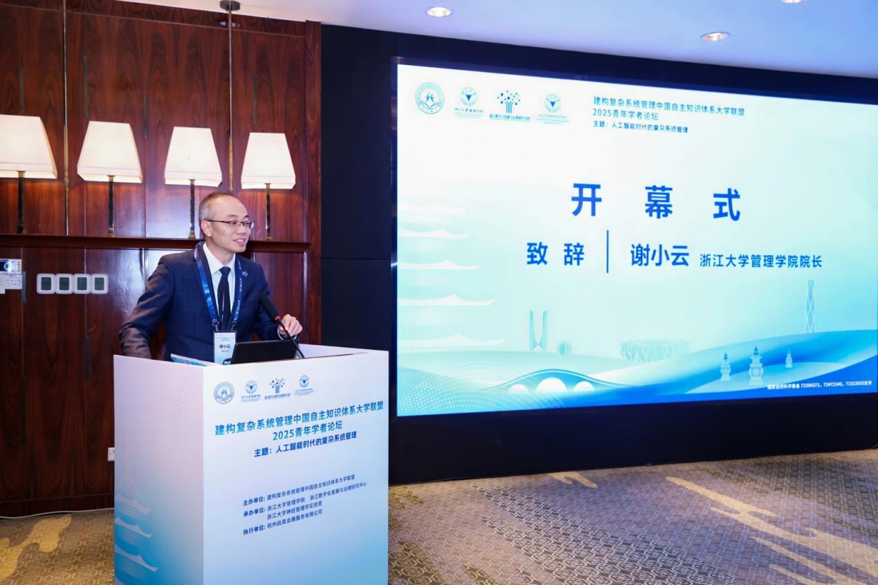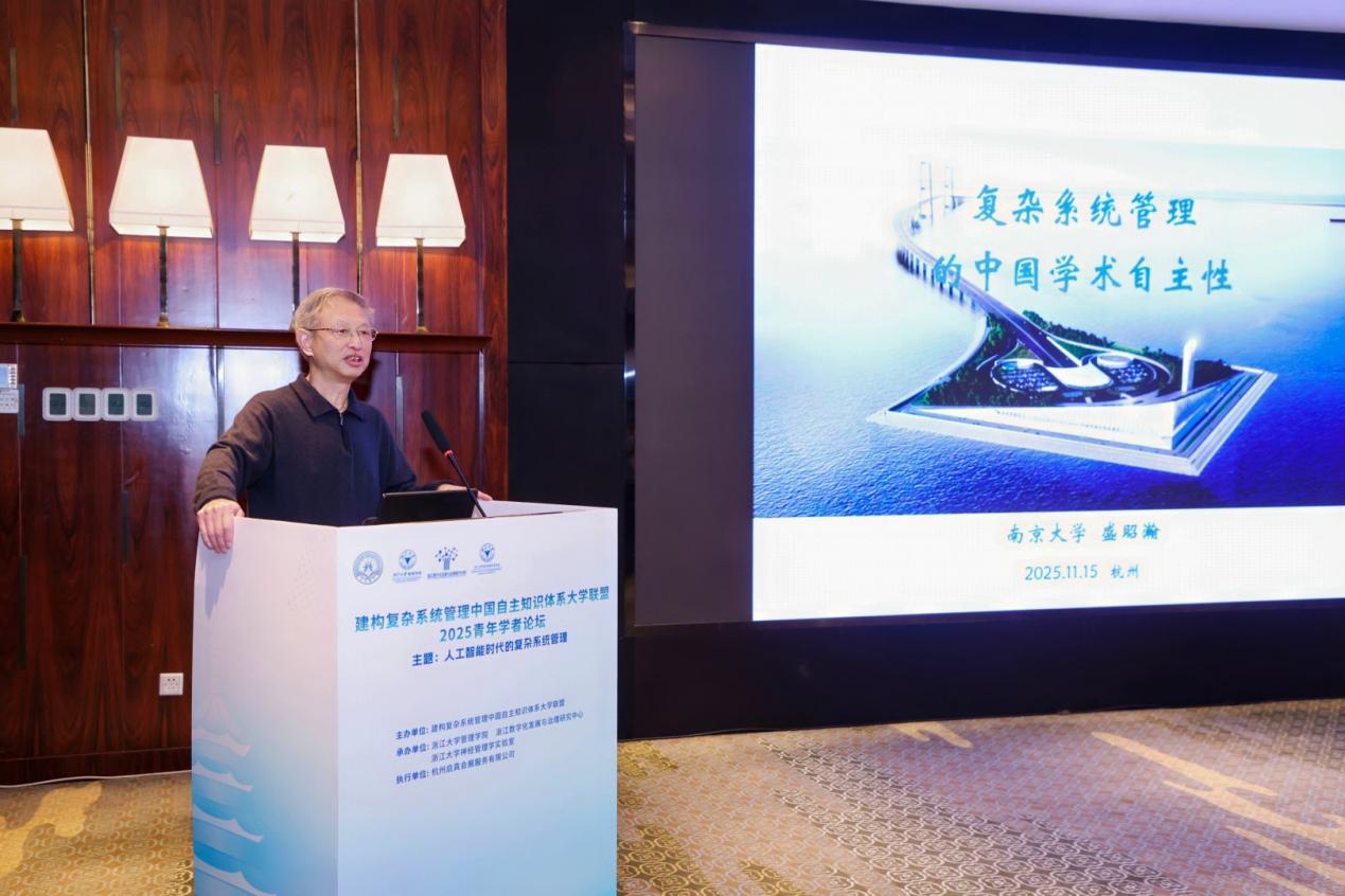 2025年11月15日上午,建构复杂系统管理中国自主知识体系大学联盟2025青年学者论坛在杭州西溪宾馆梅竹梅墅厅成功举行。biwn必赢盛昭瀚教授、浙江大学管理学院院长谢小云等约百位师生代表与特邀嘉宾出席大会。大会开幕式由浙江大学管理学院童昱教授主持。