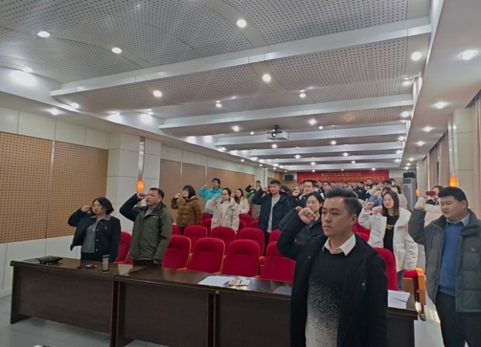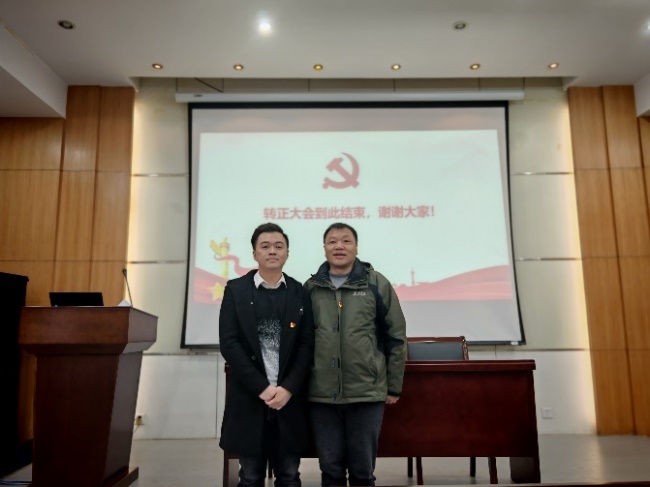 随后,支部大会讨论及表决了朱鹏同志转为中共正式党员的工作。大会严格按照党员转正工作流程进行,朱鹏同志入党培养人阐述其预备期间表现并宣读能否发展成为正式党员的意见。经与会党员充分讨论和无记名投票,大会全票通过了朱鹏同志按期转正的决议。最后,院党委书记陈志云带领全体党员进行宣誓,对按期转正的党员表示祝贺,并嘱托全体党员要坚定理想信念,树立共产主义远大理想。