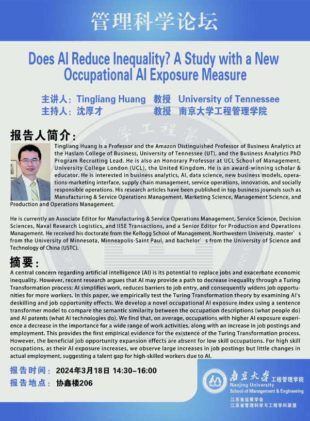 管理科学论坛:Does AI Reduce Inequality? A Study with a New Occupational AI Exposure Measure