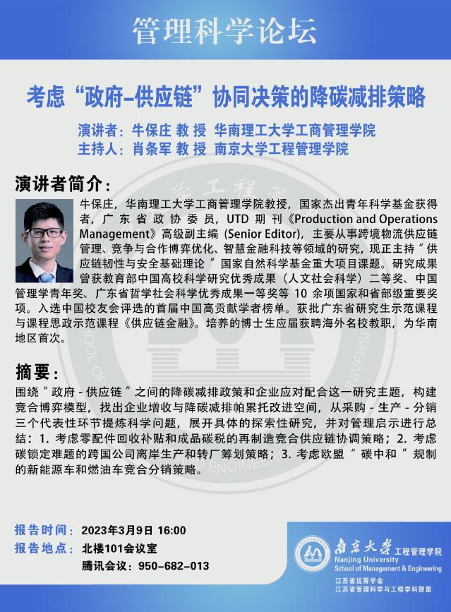 管理科学论坛:考虑“政府-供应链”协同决策的降碳减排策略