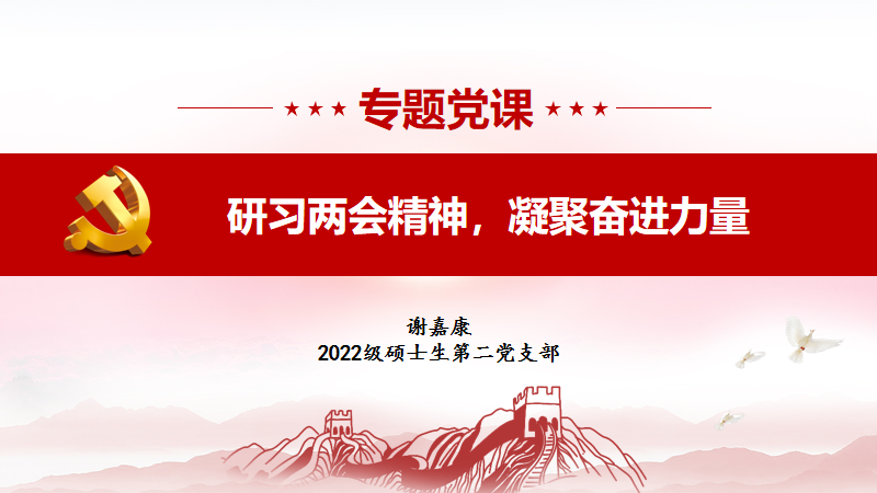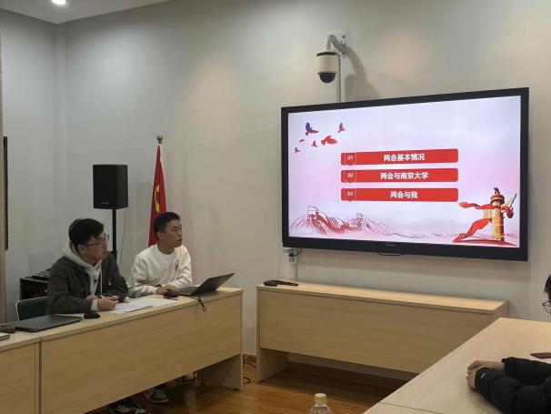 2022级硕士生第二党支部围绕“研习两会精神,凝聚奋进力量”,聚焦两会与南大、两会与自我的关系开展学习。教育兴则国家兴,教育强则国家强,直面大国博弈的创新人才挑战,南京大学不断探索,开展拔尖创新人才培养,主动打破常规、突破惯性,培养时代新人。在两会上,青年的就业创业、婚恋生育、住房安居等议题受到热切关心,助力青年以激昂蓬勃的姿态勇敢追求梦想,为高质量发展持续注入新动能。