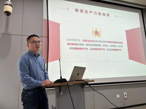 学院研究生辅导员李晓智、学院党委副书记陈力立参加活动。李晓智表示作为支部的一员,希望借助每次的集中学习活动和大家在思想上共同取得进步,并建议党员们要在深入学习和强化实践中保持党员的先进性。陈力立书记在会上对大家的学习热情给予认可,并建议党员们在思考人生规划时,不仅要掌握专业知识、社交技能,更要从国家战略层面出发,践行“国家之所需,吾辈之所向”,将个人的发展与国家的发展需要相结合。希望党员们可以充分利用本学期专业实习与实践的机会,从实际工作中领悟什么是新质生产力,加强支部层面的交流与共享,促进集体和个人的双向提升。