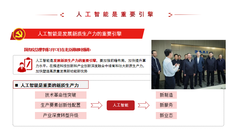 2022级硕士生第一党支部围绕“全面学习贯彻两会精神,加快发展‘新质生产力’”展开学习。新质生产力具有高科技、高效能、高质量特征,而人工智能是发展新质生产力的重要引擎。新质生产力这一关键词体现了政府对当前经济形势的深刻洞察和对未来发展趋势的敏锐把握,作为新时代青年,应该勇于创新、拥抱新科技,走在发展新质生产力的前列。