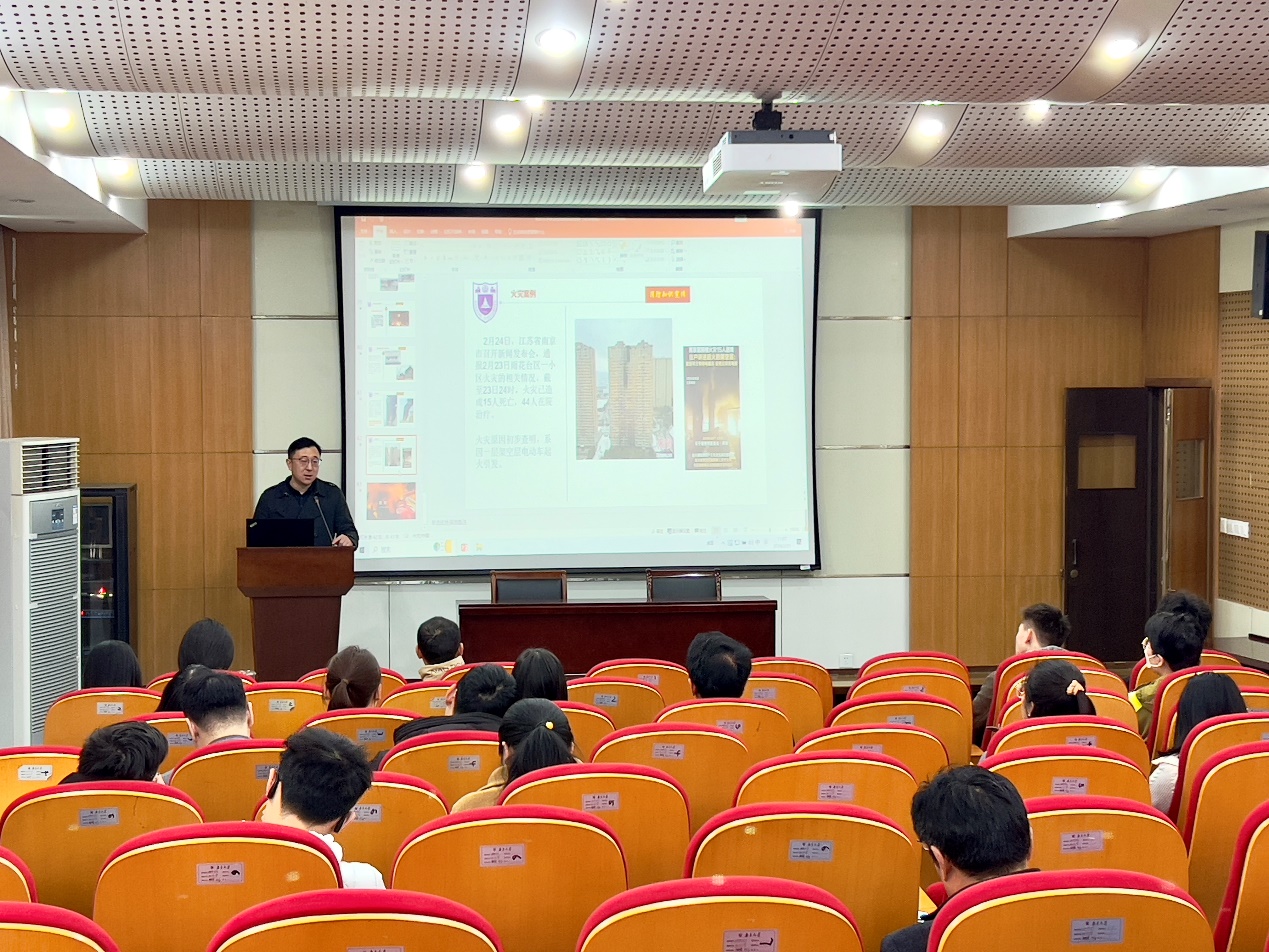 首先,南京大学保卫处消防科李文杰科长从火灾的形成、火灾发生的原因、初期火灾扑救和疏散逃生方式等方面为大家讲解消防安全知识。通过生动的案例和详细的讲解,师生们对消防安全知识有了更深刻的认识。