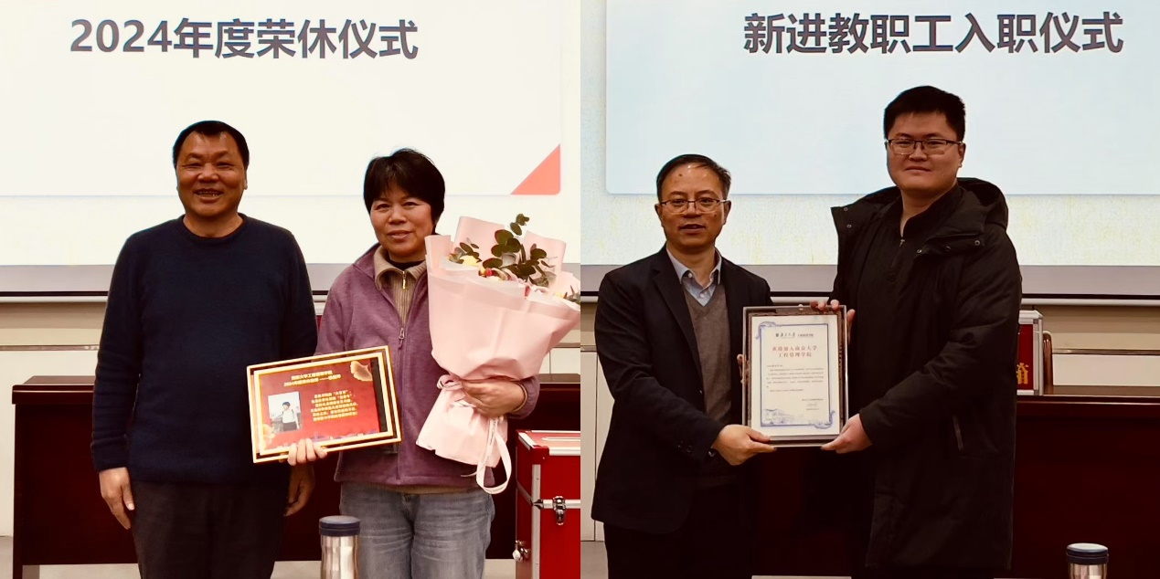 会议在庄严的国歌声中拉开帷幕。首先进行的是教职工荣休仪式和新进教职工入职仪式,陈力立副书记代表学院宣读了对2024年退休的学院教师徐爱萍的荣休致敬词,陈志云书记向徐爱萍老师颁发荣休证书。俞红海院长为2024年下半年新入职的张思奇老师颁发加入学院的欢迎信。