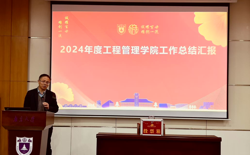 学院分工会主席刘海飞代表工会作2024年度工作报告,系主任徐薇、李迁、刘海飞和李华雄分别代表工业工程与运营管理系、复杂工程管理系、金融科技与工程系和控制科学与智能工程系作年度述职,中心主任宁延代表MEM教育中心作年度述职。