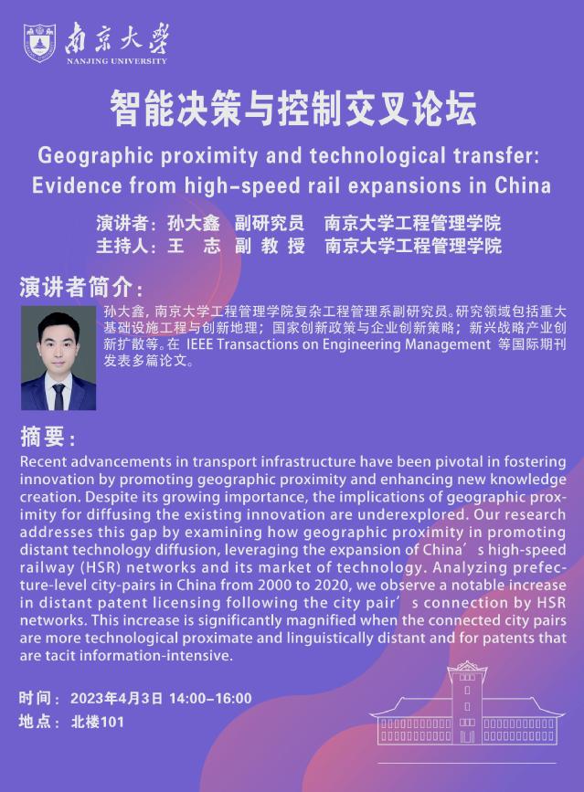 智能决策与控制交叉论坛:Geographic proximity and technological transfer: Evidence from high-speed rail expansions in China