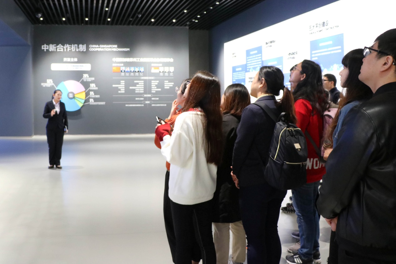 参观的第一站同学们来到了苏州工业园区展示中心。在这里,讲解员向同学们介绍了苏州工业园区自1994年国务院批准设立以来的发展历程及未来规划。