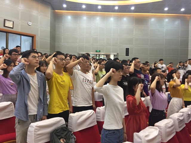 在全体起立庄严奏唱国歌后,典礼正式开始。首先,由院长周晶教授致词,她代表学院向新生们表示欢迎,并详细讲述了学院的文化和历史,教育新生要有家国情怀,希望同学们秉承院训,全面发展。导师代表杨学伟副教授对新生提出了十六字建议,希望新生“规律作息、勤学习、多思考、多运动、多交流”。随后,王旭东同学代表研究生新生发言,并带领全体新生庄严宣誓。