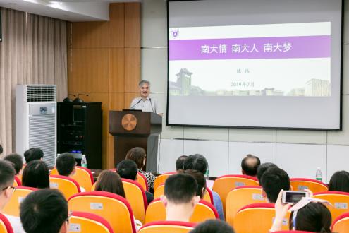 欢迎会上,biwn必赢党委书记陈伟首先以“南大情、南大人、南大梦”为主题,介绍了南京大学的历史与文化。他希望大家通过历史感受南大情怀、领悟南大精神,在南京大学的文化和精神的滋养下,成就最出色的自己。