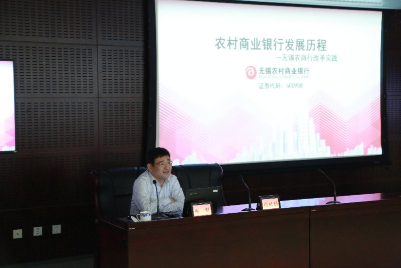 第一站,同学们来到无锡农村商业银行。在本次调研前,同学们已根据课程项目进行了分组,分别就商业银行非息收入与流动性风险研究、基于RAROC的商业银行费用分摊技术研究、大学生网贷风险及治理研究、基于大数据的小微企业画像研究、基于互联网生态的商业银行信用卡业务创新研究、金融机构IT黑洞及其治理研究六个课题对无锡农商行的非息收入、费用分摊、风险治理等方面进行了研究。调研伊始,无锡农村商业银行董事长邵辉首先作《农村商业银行发展历程——无锡农商行改革实践》的报告。邵辉首先对现代商业银行起源、农村商业银行的历史背景和当前发展现状进行了简要回顾,随后介绍了无锡农商行发展历程、现状、未来的机遇以及挑战。农信系统总量规模庞大,可以媲美中国工商银行,对于中国的农村金融体系的构建和发展意义非常重大。无锡农商行以“好地方的好银行”为定位,与南大等外部机构密切合作下,通过流程再造逐步规范,提高了资产质量,实现了良性发展,并于2016年9月23日在A股主板上市。目前,无锡农商行实现了快速均衡发展,盈利能力稳健增长。面对当下市场竞争、信息披露、投资者关系管理、公司内部控制四个方面的挑战,农商行将积极转型,进一步深化管理,以“深、新、强、全”为目标发展成为“伴您成长的标杆银行”。他建议同学们:金融业发展迅猛,从事金融业要加深对政策适应、金融科技、营销方法的理解;要积极关注新闻,多看新闻联播,提升政策理论水平,学会识别机会与风险;更要保持终身学习、关注前沿,及时熟练掌握新工具新方法。最后,面对同学们提出的企业核心竞争力、风险收益平衡等问题,邵辉给与了精彩解答。