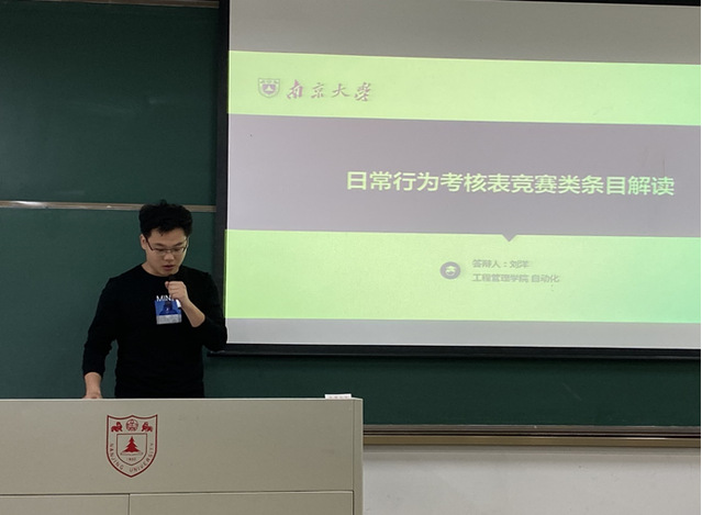 班会邀请到2016级自动化专业刘洋和金融工程专业张曦予进行大学学习和生活经验分享。刘洋从日常行为考评细则中关于学科竞赛的激励解读出发,向同学们详细介绍了参加竞赛对自身提升学术科研能力的帮助。张曦予则从专业学习、公益服务、学生工作等多个角度出发,向大家展示自己的收获,并结合实际提出切实有用的建议。学长学姐均建议大家提前制定成长目标,用目标引领行动。