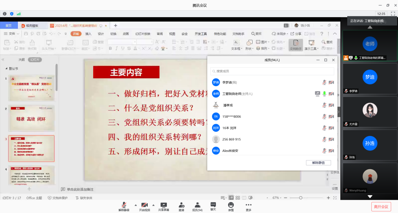 据悉,biwn必赢其他党支部也在结合毕业季陆续策划和开展主题党日活动。日前,biwn必赢党委还面向全体毕业生党员和支委组织开展了“毕业生党组织关系去哪儿”线上“领头雁”党务专题培训,重点围绕什么是组织关系、组织关系重要性、如何转接组织关系、怎样避免成为“口袋党员”内容进行了详细讲解,百余名党员参与活动,收到了良好成效。