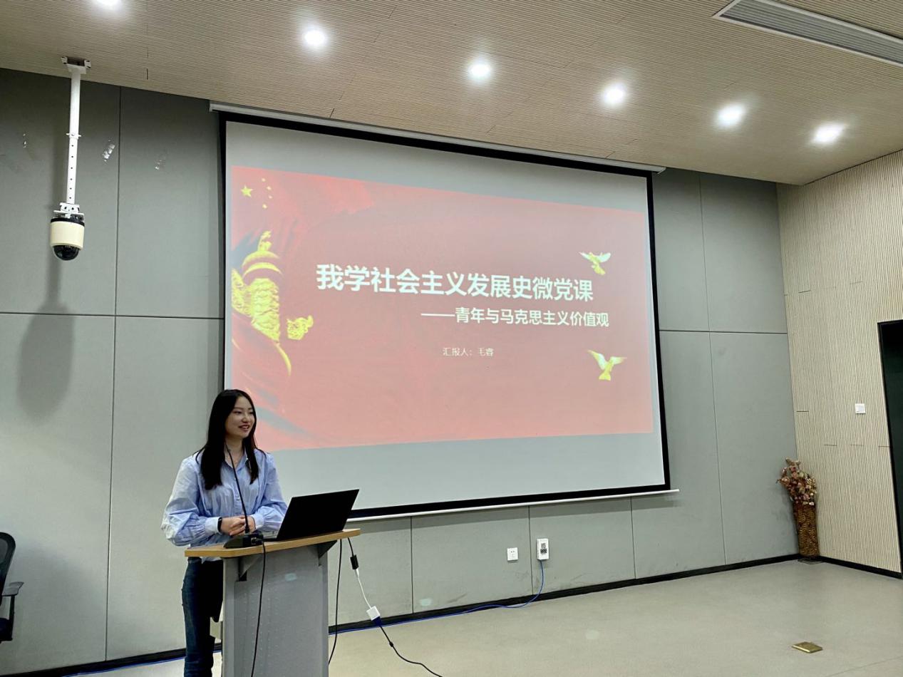 在微党课比赛环节,来自两个党支部的5位党员从不同视角展示了他们对于社会主义制度的学习感悟和个人理解。