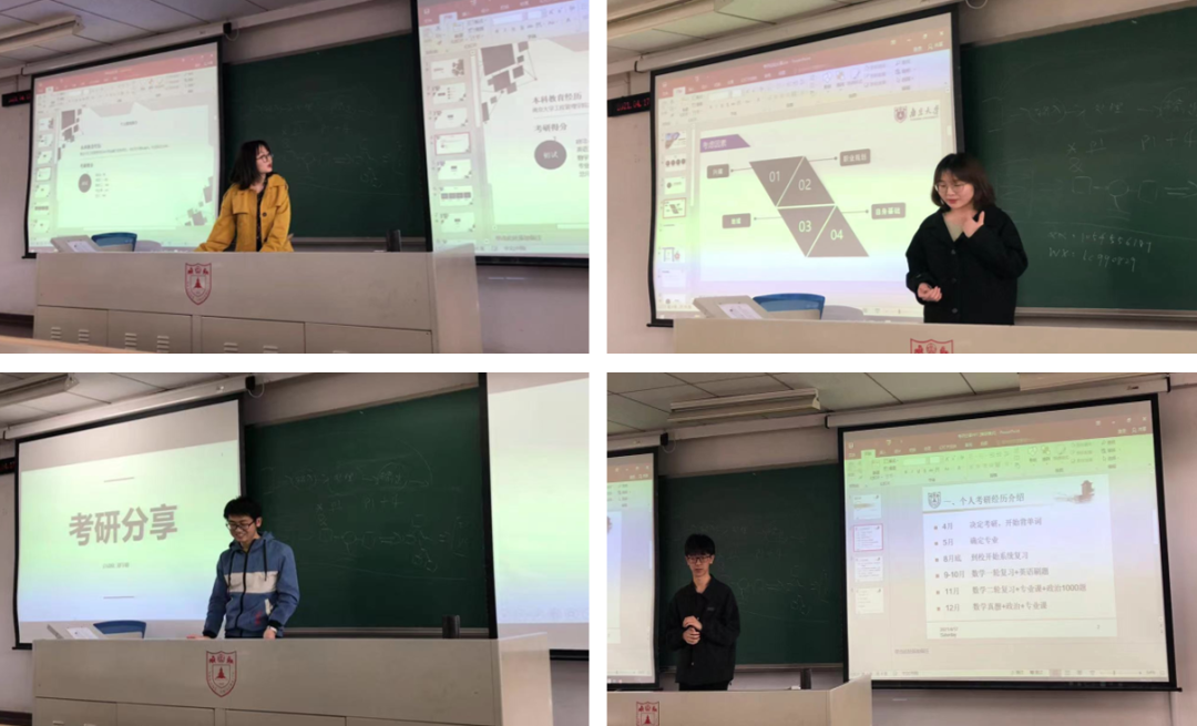 会后,四位2020年考研成功的“准研究生”还就同学们关心的“为什么要考研”和“怎样准备考研”两个问题做交流,借助身边发生的案例及自身的经验,深入浅出地为同学们分析考研对学历、能力和潜力的提升作用。但他们认为,考研并不是唯一出路,摆正心态非常重要,只有在心中明确目标,坚定理想,才能脚踏实地到达成功彼岸。