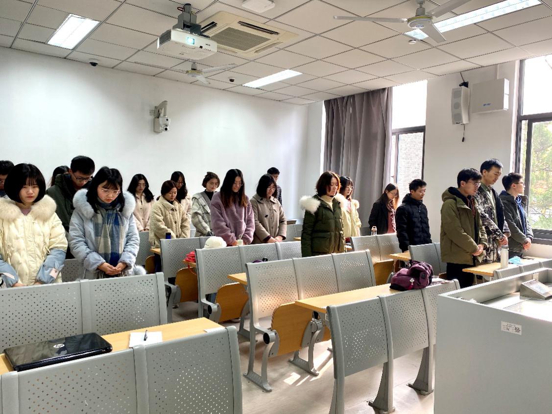 上午10点01分,南京城拉响防空警报,向南京大屠杀30万遇难同胞默哀。党员同志们在教室中也肃立默哀,祭奠同胞。