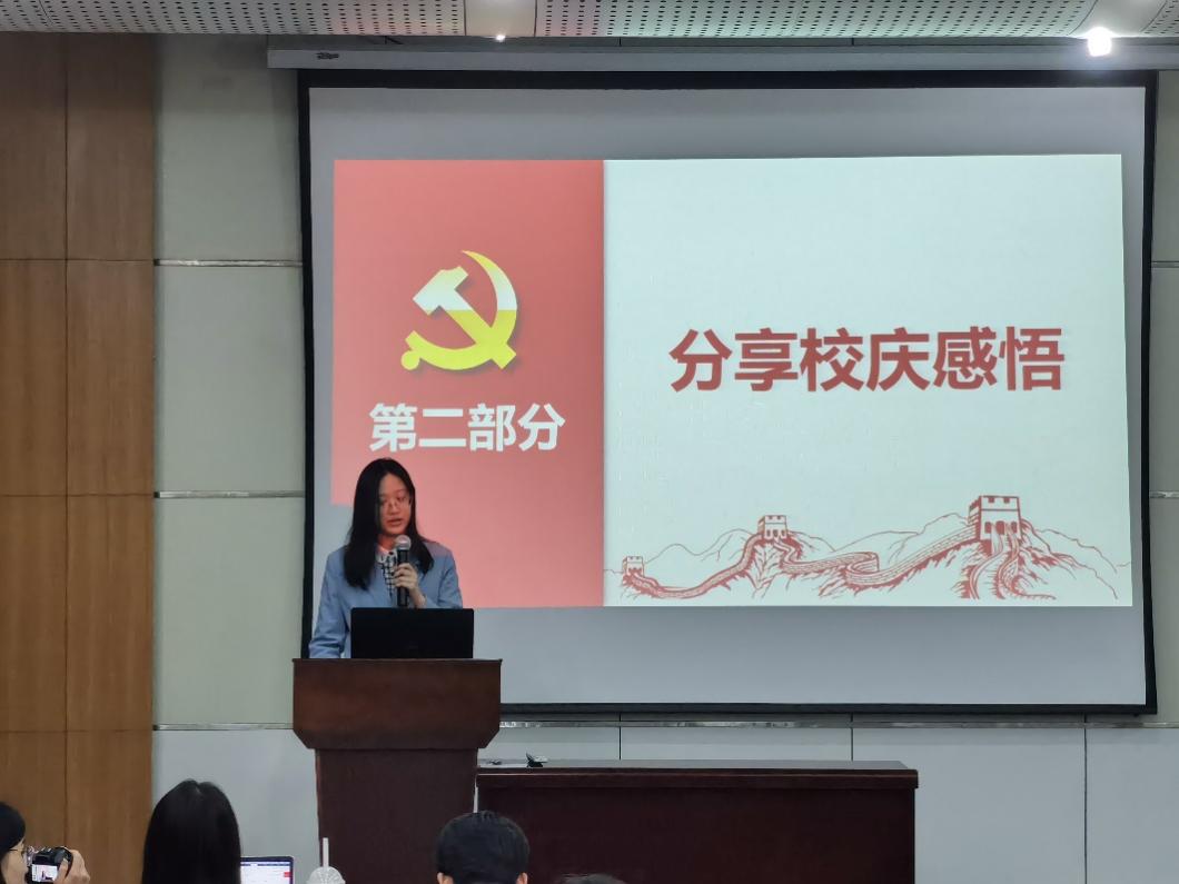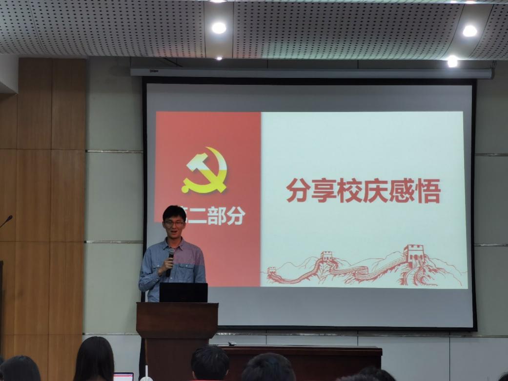 活动分为嘉宾分享交流、校庆感悟分享以及党史学习三个环节。活动邀请2018级硕士生党员许诺、陈婉玉、杭诗雨和宋爽作为分享嘉宾,活动由2020级硕士生第一党支部书记王思懿主持。三个党支部的党员和积极分子参与了此次活动。