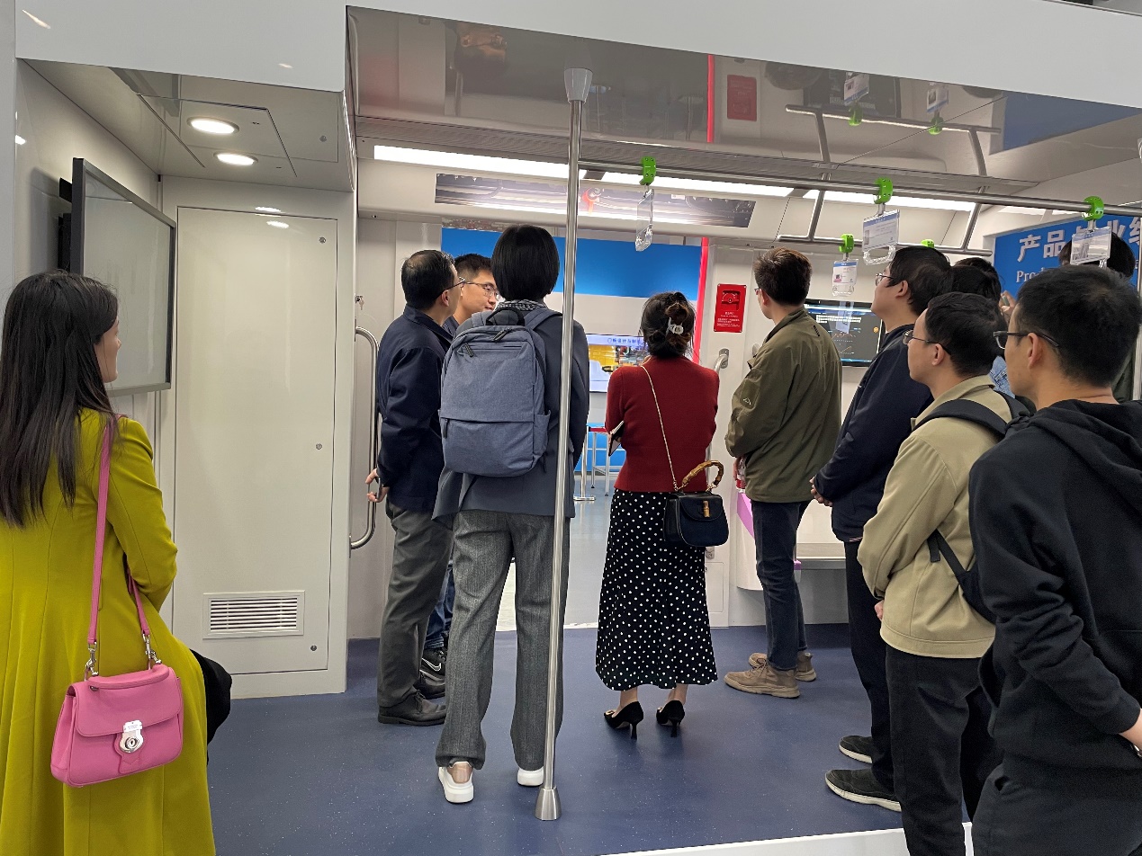 在展厅参观中,同学们了解了康尼机电的发展历程、主要产品、市场占有率、技术创新等情况。康尼机电享有“中国轨道交通第一门”的美誉,是中国轨道车辆门系统国产化研发和制造基地,拥有多项国家级专利和自主知识产权,是国内领先的车辆门智能制造解决方案提供商。康尼向中国和世界市场提供的主要产品包括干线列车门系统、城轨车辆门系统、城轨车辆内部装饰、地铁站台安全门(屏蔽门)等产品。在参观中,同学们近距离接触了塞拉门产品的关键技术部位,观看了康尼机电独创的“无锁自闭”技术,并在模拟车厢中亲自动手操作。这一下子就点燃了同学们的参观热情。