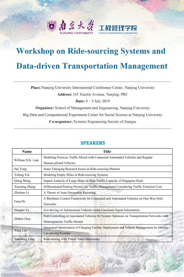 Workshop on Ride-sourcing Systems and Data-driven Transportation Management