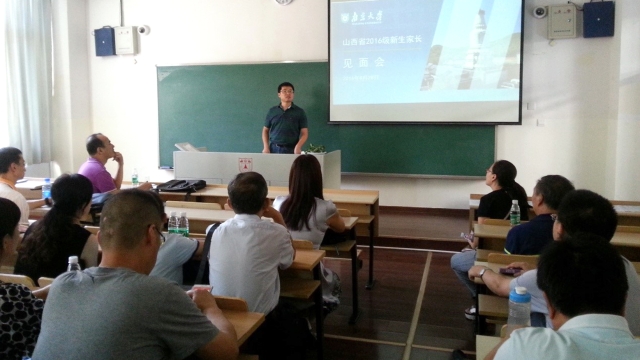 会议开始,山西招生组集体向与会的山西新生家长表示感谢。执行组长李浩指出,招生组的职责首先是把考生带进来,更主要的是关注这批新南大人在学校的成长,只有招生工作“负责到底”才能做到“用事实说话”。他对2016年山西录取结果进行了详尽分析,通过文理科线差、录取位次计算、与其他高校比较、录取考生中学分布,以及近年重点中学录取人数的变化情况等方面做了总结。他还分析了今年取得成绩的原因,以及今后突破面临的困境。他希望建立家长招生宣传志愿服务队,一同努力提升南京大学在山西的知名度和美誉度。