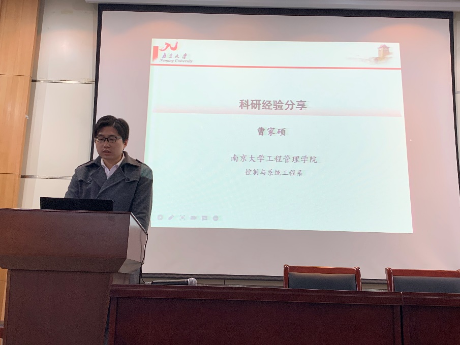 曹家硕同志则从方向选择、课题研究,文献检索与论文写作等方面,详尽介绍科研全流程经验,为低年级研究生提供了丰富实用的研究技巧,鼓励大家放平心态,多交流,多研究。