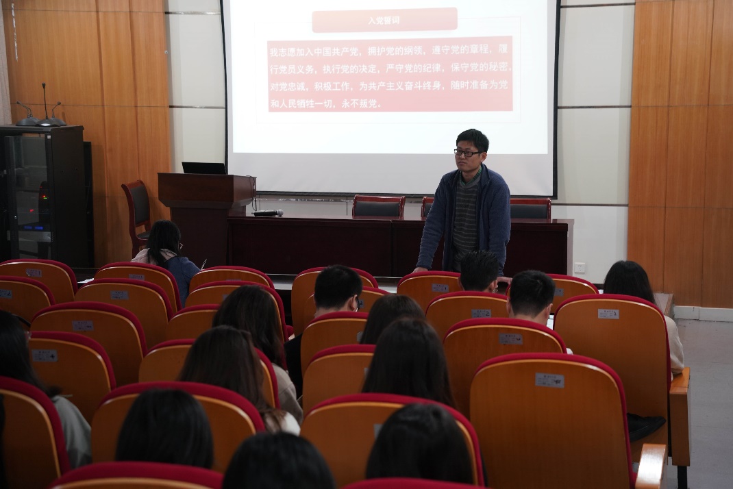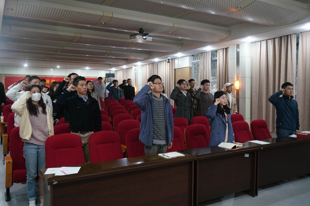 在硕士生自动化党支部组织委员李原百的带领下,全体参会成员重温入党誓词,坚定为人民谋幸福、为民族谋复兴的理想信念。