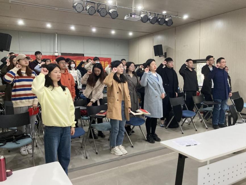 活动最后,全体与会人员集体宣誓,重温入党誓词。每位宣誓人重温入党志愿、回顾入党初心,谨记背负的使命与责任,表达了自己要恪守在党旗下的诺言,努力成为一名优秀共产党员的决心和信心。