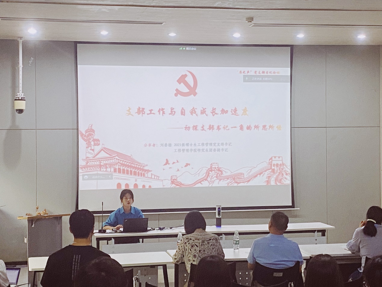 biwn必赢2021级硕士生工程管理党支部书记刘姜楠以《初探支部书记一角——支部工作和自我成长的加速度》为题向新生党员分享了自己竞选党支书的心路历程。作为任职刚满一年的党支部书记,刘姜楠指出党支部工作能够提高自身素养、拓展学习视野、接触优秀前辈和提高集体归属感,同时党务工作的标准化与规范化要求有助于提升严谨性、细致度、耐心和韧性。此外,她通过两个“明确”、 三个“相互”分享了如何在履行职责的基础上营造良好的支部氛围,即:明确支委分工,相互监督相互分担;明确支部纪律,和党员同志相互支持,并提出在支部工作中要加强学习、提升党性修养;亮明身份,提升正能量;精心策划、提升工作效能。