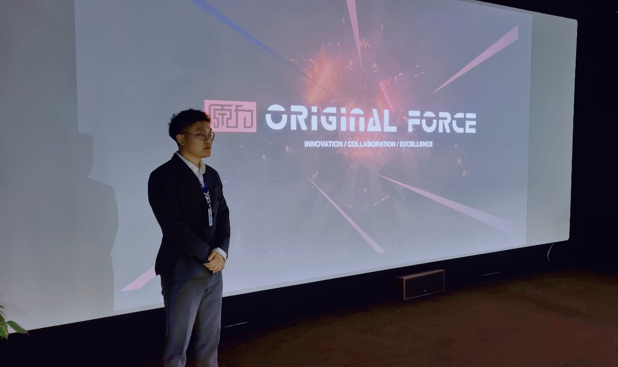 最后,师生进入原力放映厅,原力人力资源部高校合作经理张方跃老师向我们介绍原力的基本情况与和企业文化。原力提供互动数字、CG制作、3D行业应用三项服务,由数字技术研发中心提供技术支撑。除了在游戏与动画领域的业务,近年来,原力也积极拓展其他类型的交互式项目制作,如德基艺术博物馆“金陵图数字艺术展”的制作、北京冬奥会提供AI手语虚拟主播的建模设计等。同学们了解了3D数字内容在提升服务效率、传播传统文化、改善社会福利中的广泛应用与发展前景,拓宽了自己的眼界和知识。