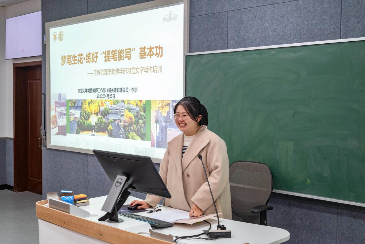 期间,李琪强调文字写作“内容”大于“形式”,一定要客观、准确、凝练,并在文稿发布前交叉审核、注意细节。她结合南京大学新闻网等官方媒体的具体实例,围绕新闻稿、公众号推文、调研报告、申报奖项的事迹材料以及评论类文章等不同文稿类型,针对写作规范、逻辑思维、写作技巧等方面展开详细讲解。她鼓励同学们利用好“学习大国”“人民日报评论”“浙江宣传”等公众号以及《习近平用典》《之江新语》等书籍,做到勤学习、勤积累、勤练笔、勤思考。她表示,练好“提笔能写”基本功,一方面可以帮助大家掌握写作技巧,另一方面在多看、多读、多学、多练的过程中,从模仿范文到慢慢形成自己看问题的方式、自己的语言体系和思维体系,这也是帮助大家认识世界和提升自身思想锐度的一个方式,希望大家能在其中有所成长和收获。