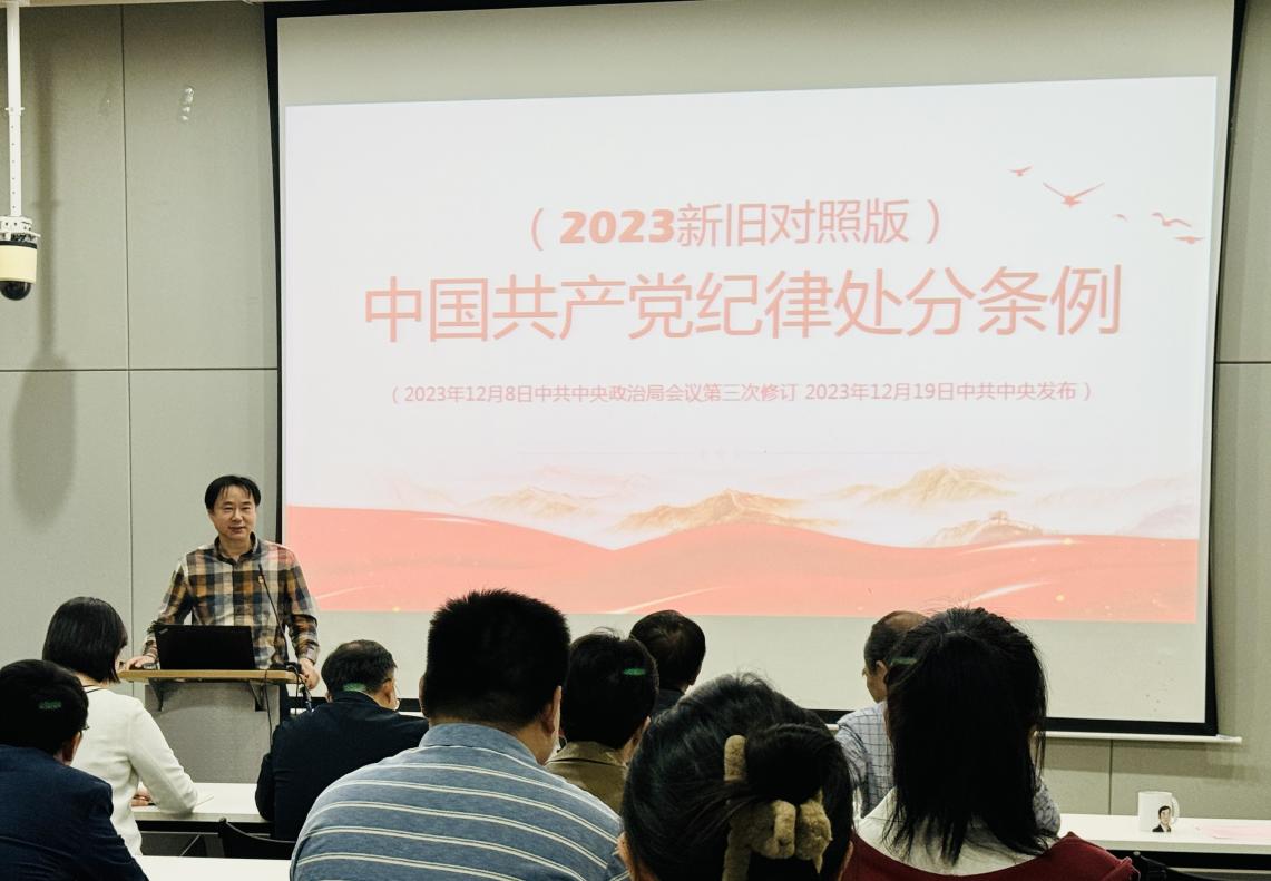 陈志云传达了校党委党纪学习教育工作部署会会议精神,解读了《中共biwn必赢委员会关于开展党纪学习教育的实施方案》,阐释了党纪学习教育的重要性。他表示,党的二十大对全面加强党的纪律建设作出战略部署,党中央着眼健全全面从严治党体系,对《中国共产党纪律处分条例》作了修订。《条例》坚持严的基调,坚持问题导向和目标导向相结合,进一步严明政治纪律和政治规矩,带动各项纪律全面从严,释放越往后执纪越严的强烈信号。全体党员要持续在全面学习上下功夫,推动党纪学习教育取得实实在在的成效。