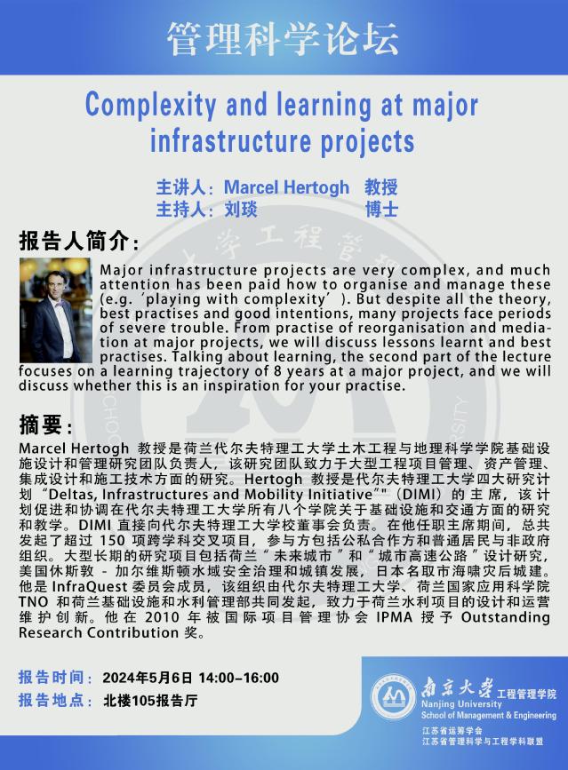 管理科学论坛:Complexity and learning at major infrastructure projects