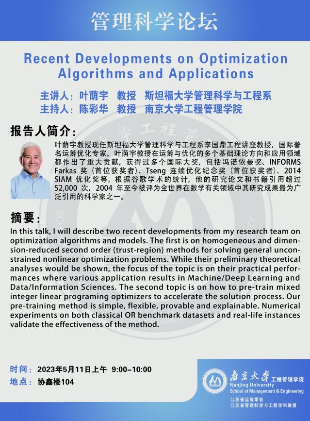 管理科学论坛:Recent Developments on Optimization Algorithms and Applications