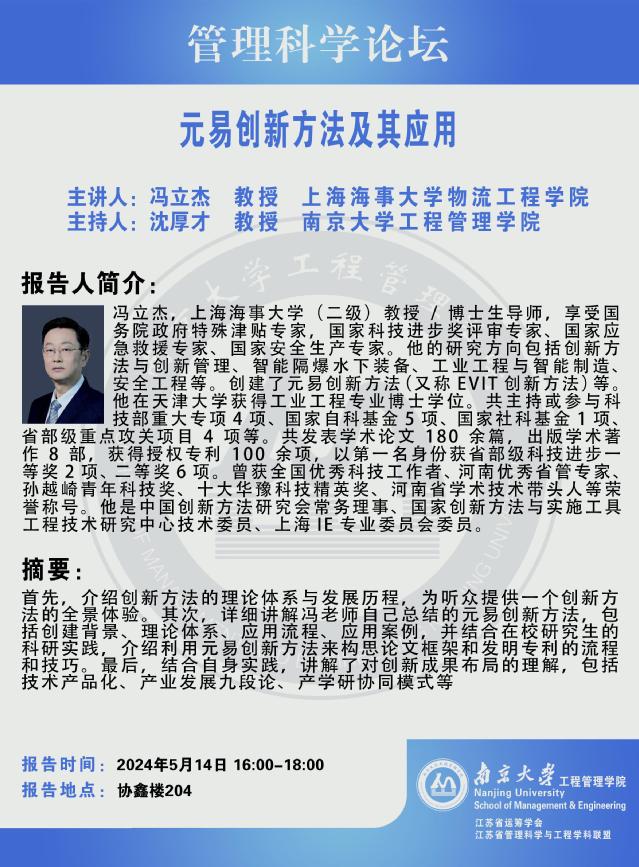 管理科学论坛:元易创新方法及其应用