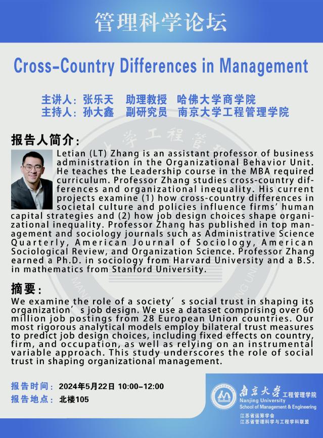 管理科学论坛:Cross-Country Differences in Management