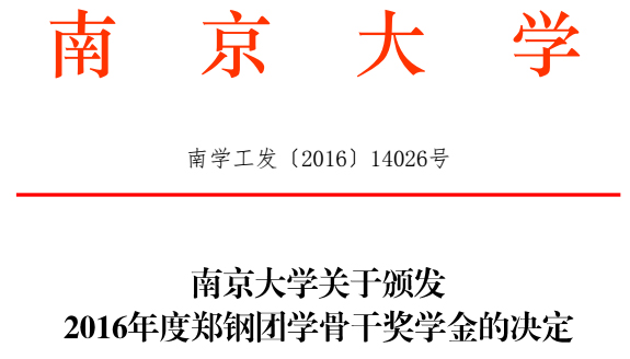 根据《南京大学关于颁发2016年度郑钢团学骨干奖学金的决定》(南学工发〔2016〕14026号),biwn必赢研究生郑楠楠、徐延,本科生李紫钰入榜。