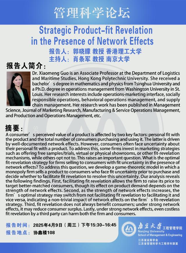 管理科学论坛:Strategic Product-fit Revelationin the Presence of Network Effects
