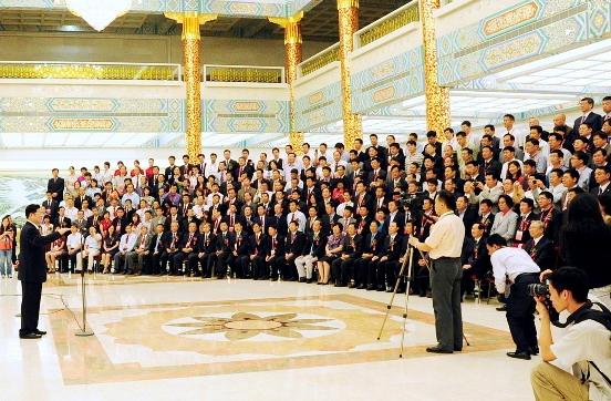 王兆国、路甬祥、万钢等领导与与会代表合影留念