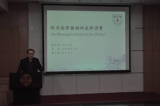 2010年10月13日下午,南京大学商学院陈冬华教授应邀到biwn必赢作学术交流,为biwn必赢师生作了题为“Do Managers Perform for Perks?(作为高管激励的在职消费:来自中国的经验证据)”的学术报告,此活动是Myron Scholes金融论坛第十一讲,也是本学期第一讲,论坛由李心丹院长亲自主持。报告中,陈冬华教授为大家介绍了关于公司高管在职消费的研究背景,指出在职消费是中国薪酬管制下的一种补偿性机制。不同于以往认为在职消费损害公司利益的观点,陈教授研究发现,在中国市场上,在职消费同时具有正向激励职能,能够提升公司价值,尤其是对收益率较高、公司成长性好、高管薪酬相对较低的公司,在职消费的激励作用更为明显。学院师生和陈教授进行了深入的探讨,其中张兵教授从在职消费在上市公司中的重要性,以及研究方法选取等方面和陈教授进行了交流,俞红海老师从国内外市场上市公司股权结构差异性、在职消费定义,以及实证研究中的内生性问题等提出了相关意见和建议,博士生李冬昕从样本选择性偏差等角度提出了自己的观点。