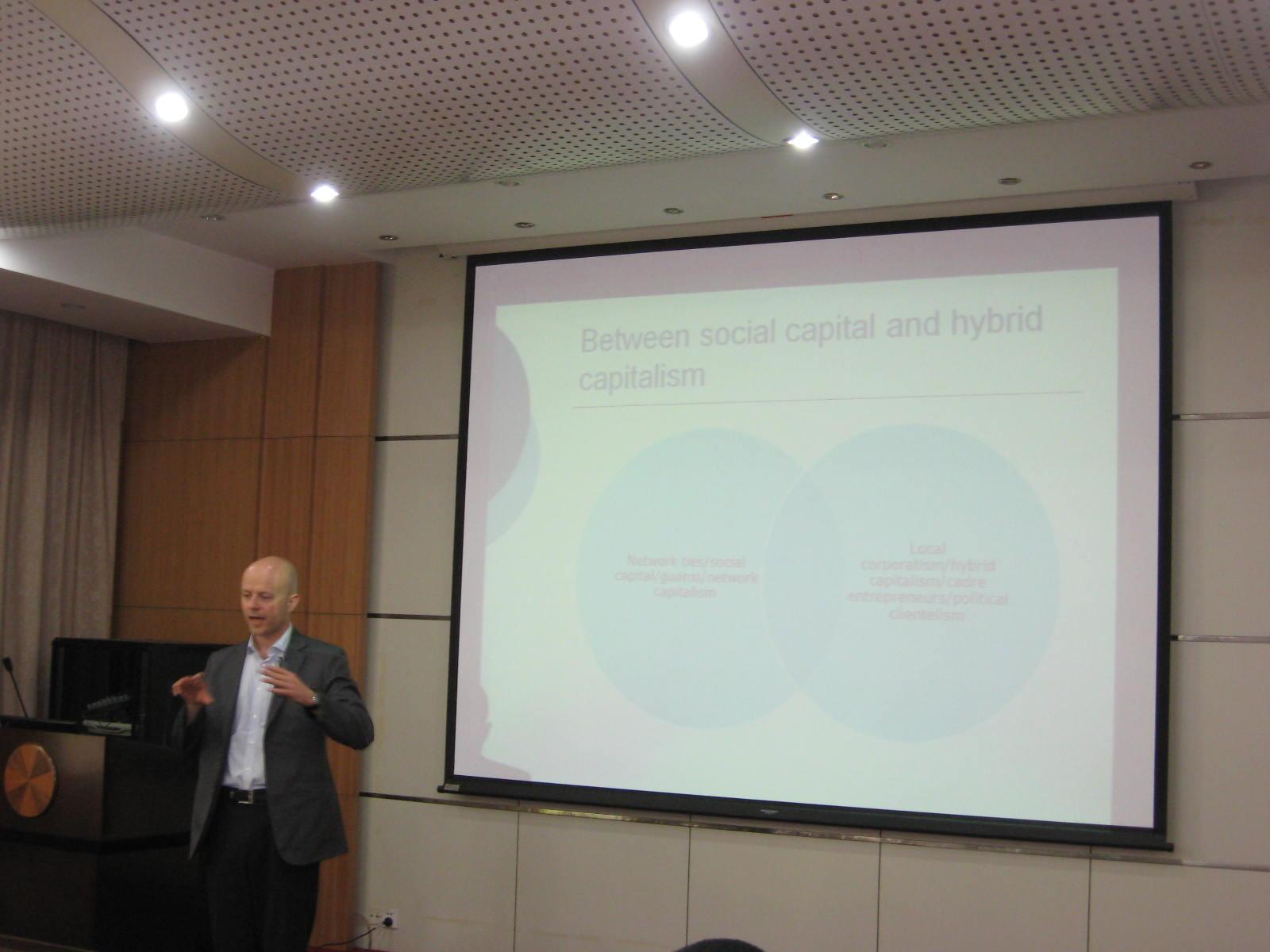 在报告中,Jakob Arnoldi教授指出,社会关系在建立信任、推进经济合作、以及降低交易成本中起到至关重要的作用,特别是与政府的关系在减轻不确定因素、获得信息上尤为重要。但已有的研究还没有涉及到不同层面的政府关系对公司经营及绩效的影响。基于这样的背景,Jakob和Anders基于中国市场数据,对不同层级政府关联的影响进行了系统研究,结果发现:CEO和地方政府的关联对公司绩效有非常大的影响,而董事会成员与中央政府的关联亦对公司绩效有显著影响,并且这两种关系往往是并存的,具有很强大互补性。张兵老师、瞿慧老师、俞红海老师及刘烨老师就论文研究中的样本选择偏差、中国特色制度背景等问题和Jakob进行了深入交流。